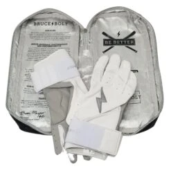 Bruce Bolt PREMIUM PRO Chrome Series Long Cuff Batting Gloves: White